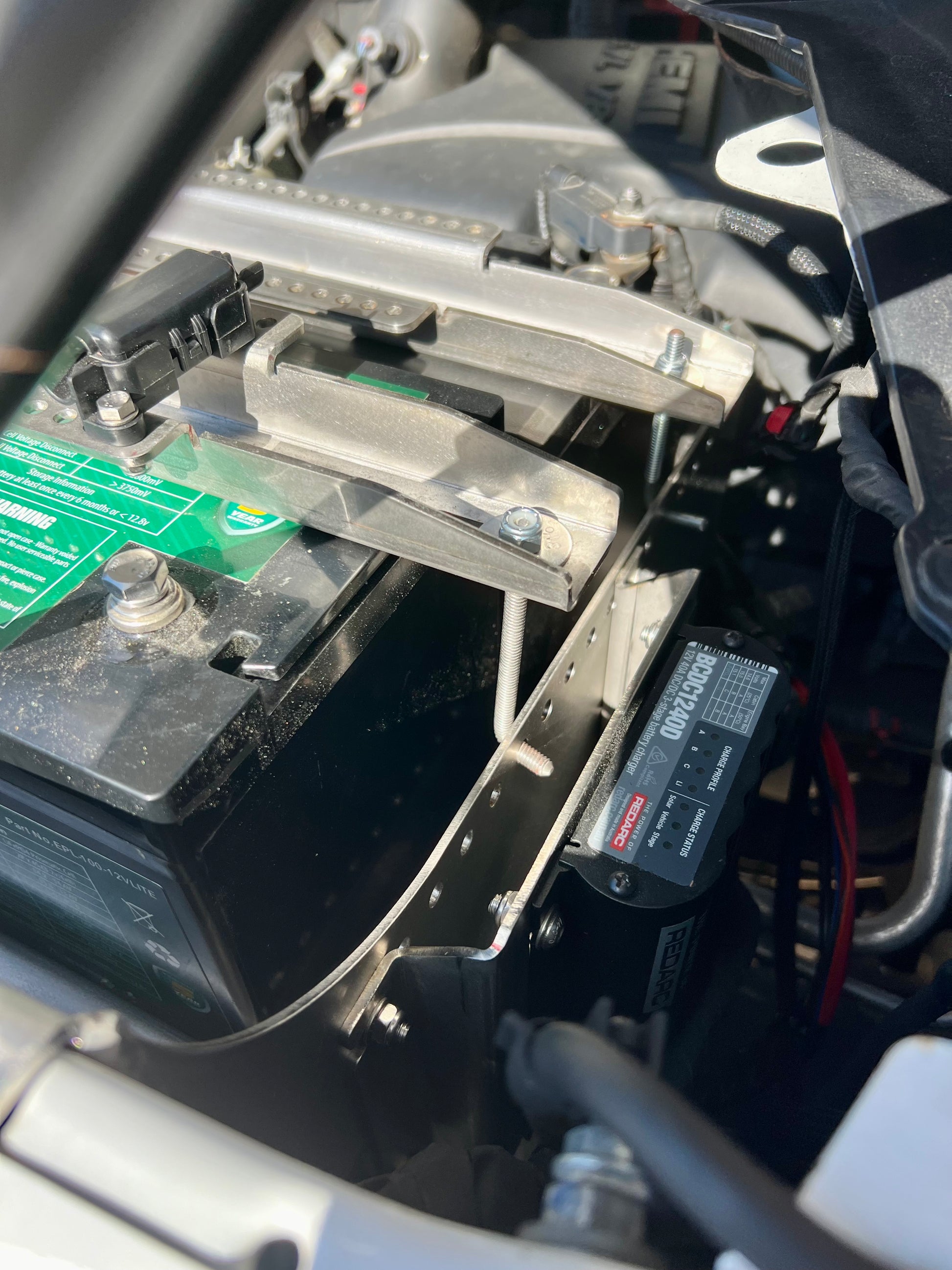 Expertly mount your Ds ram battery with the Redarc charger mount, crafted from sturdy 3mm stainless steel. With included hardware, easily attach the mount to your battery tray for a secure installation. Keep your battery charged and organized with this durable and convenient solution.
