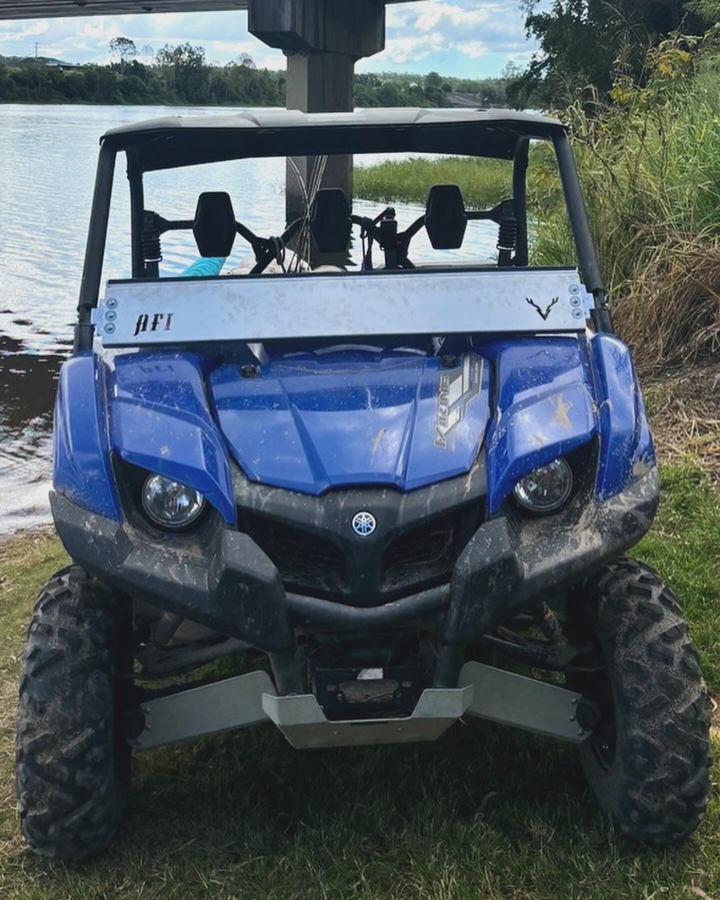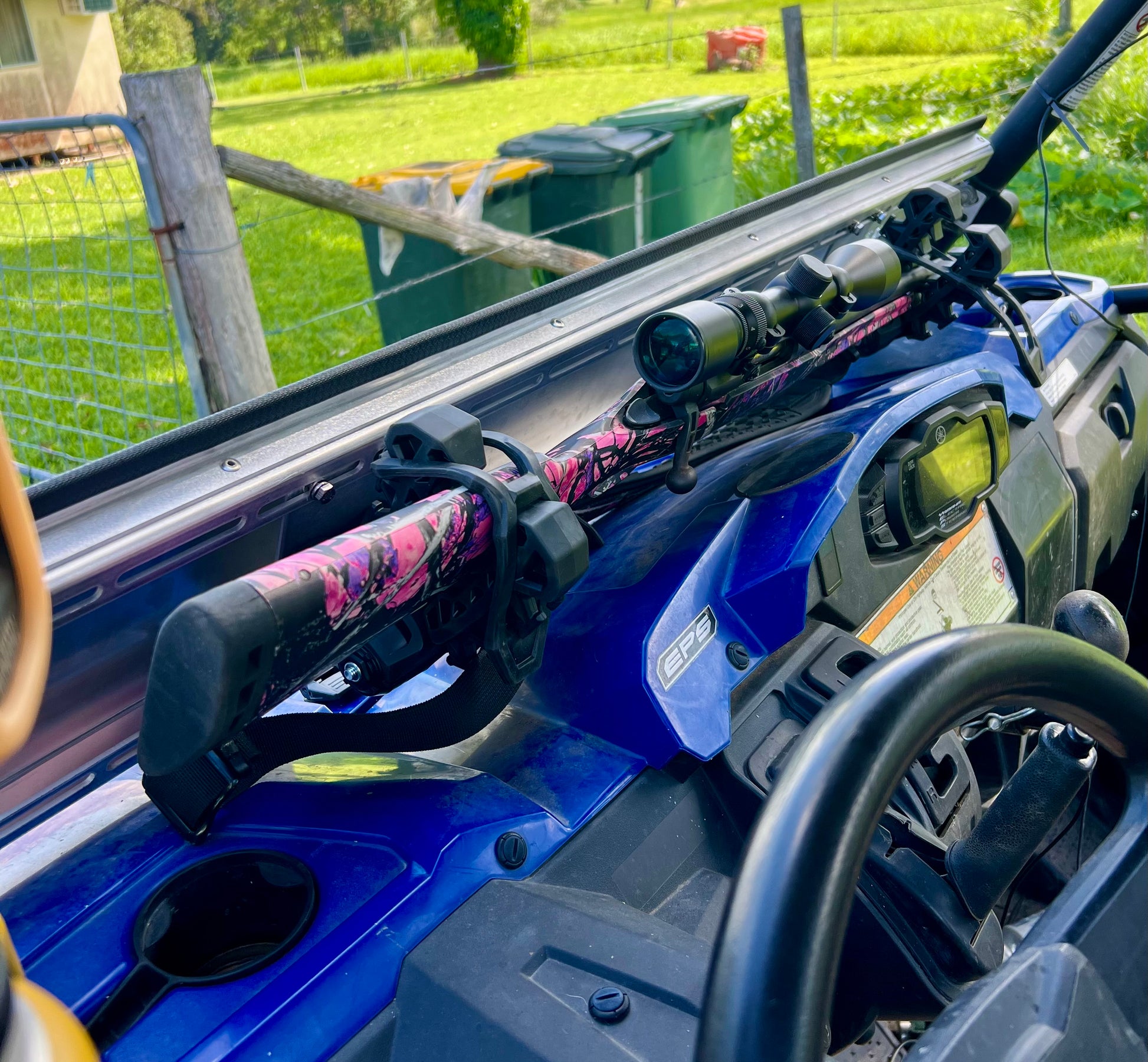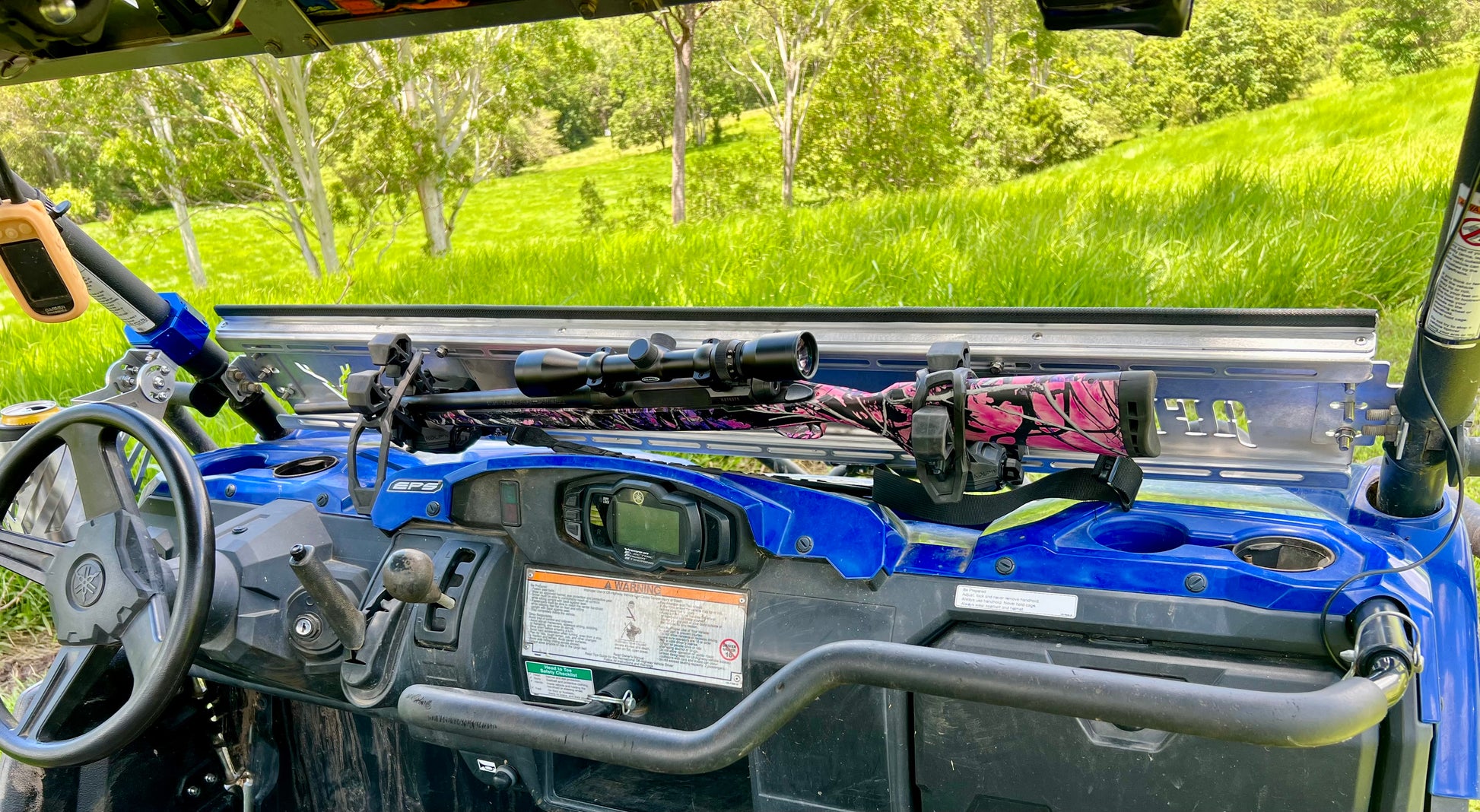 Introducing the Yamaha Viking gun rack and wind deflector, crafted with high-quality 3mm alloy material. Not only does this rack securely hold your gun, it also serves as a wind deflector and a convenient shooting rest. Comes with all necessary mounting hardware and brackets, pinch weld to rest your gun on, and either raw finish or powder-coated Sahara black finish. Enhance your shooting experience with this product.